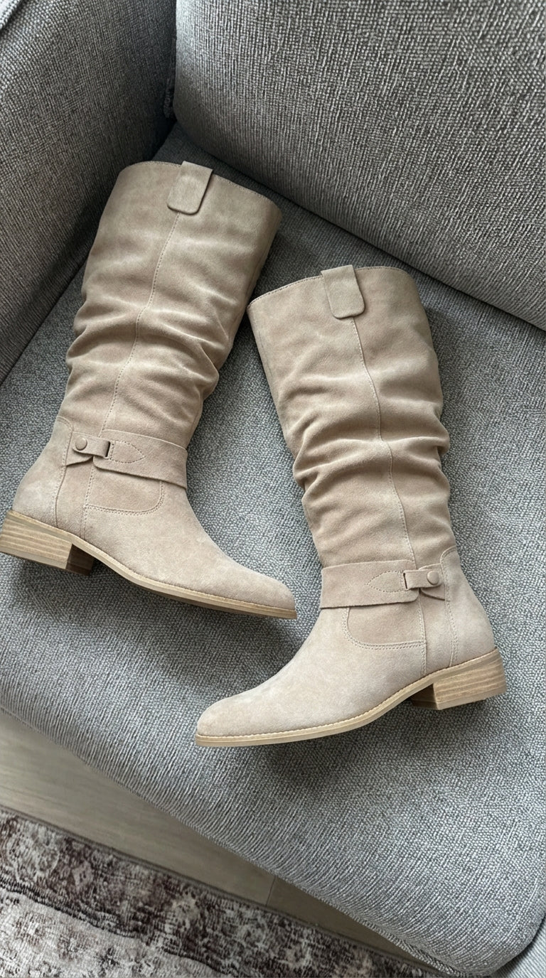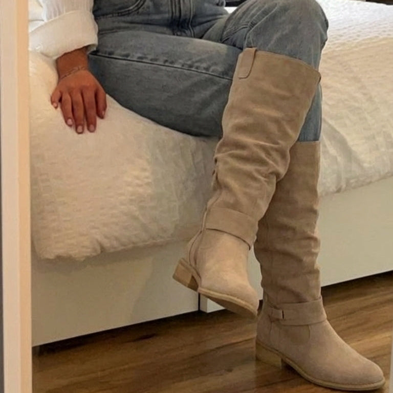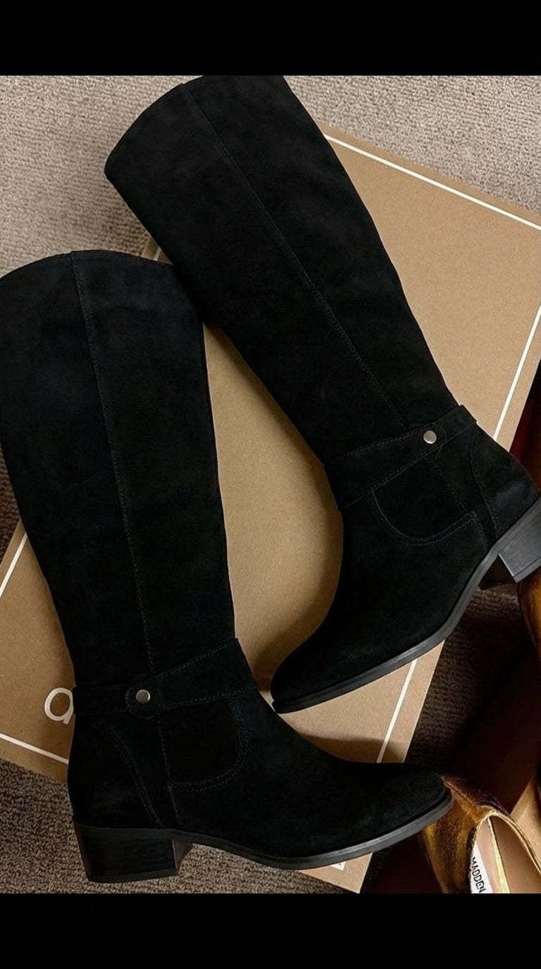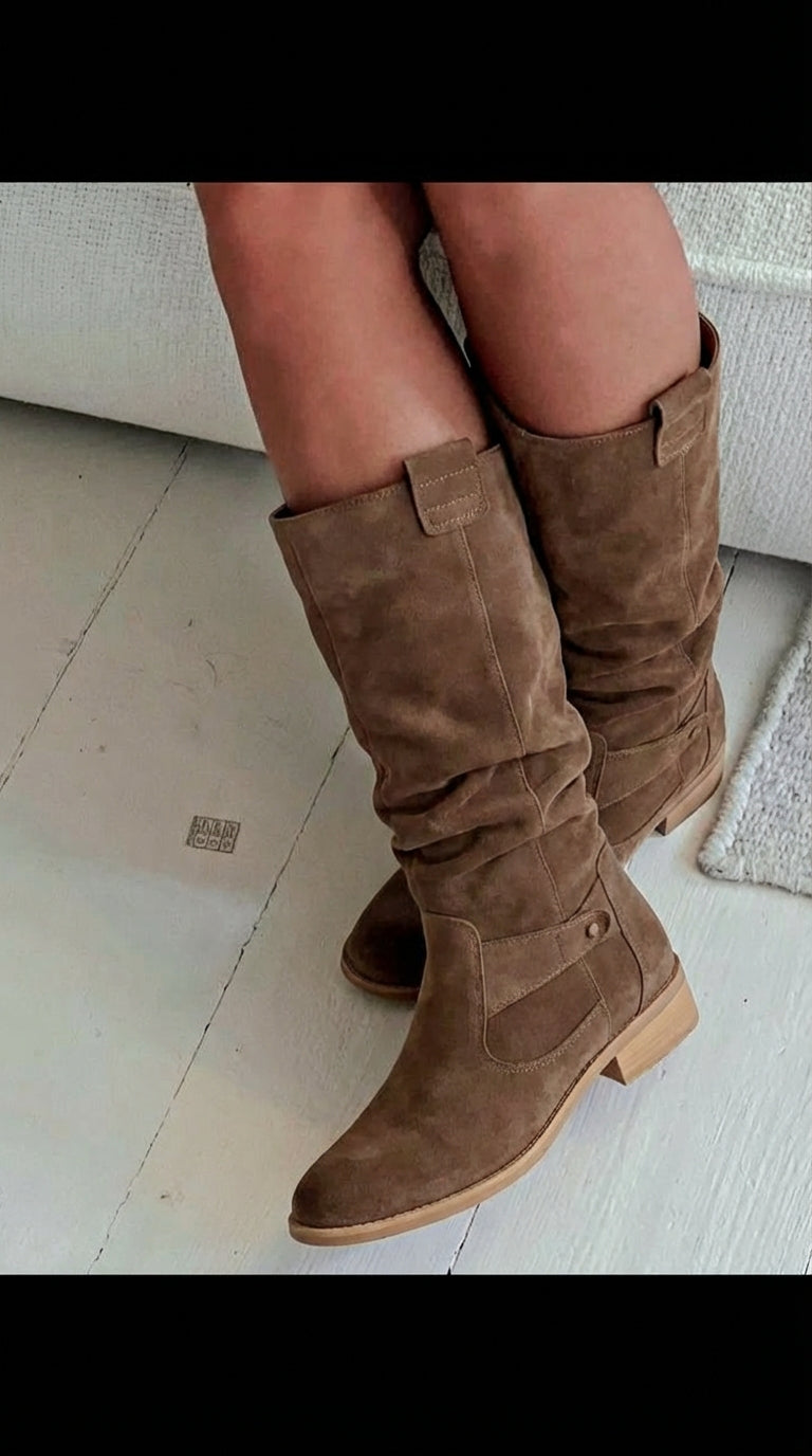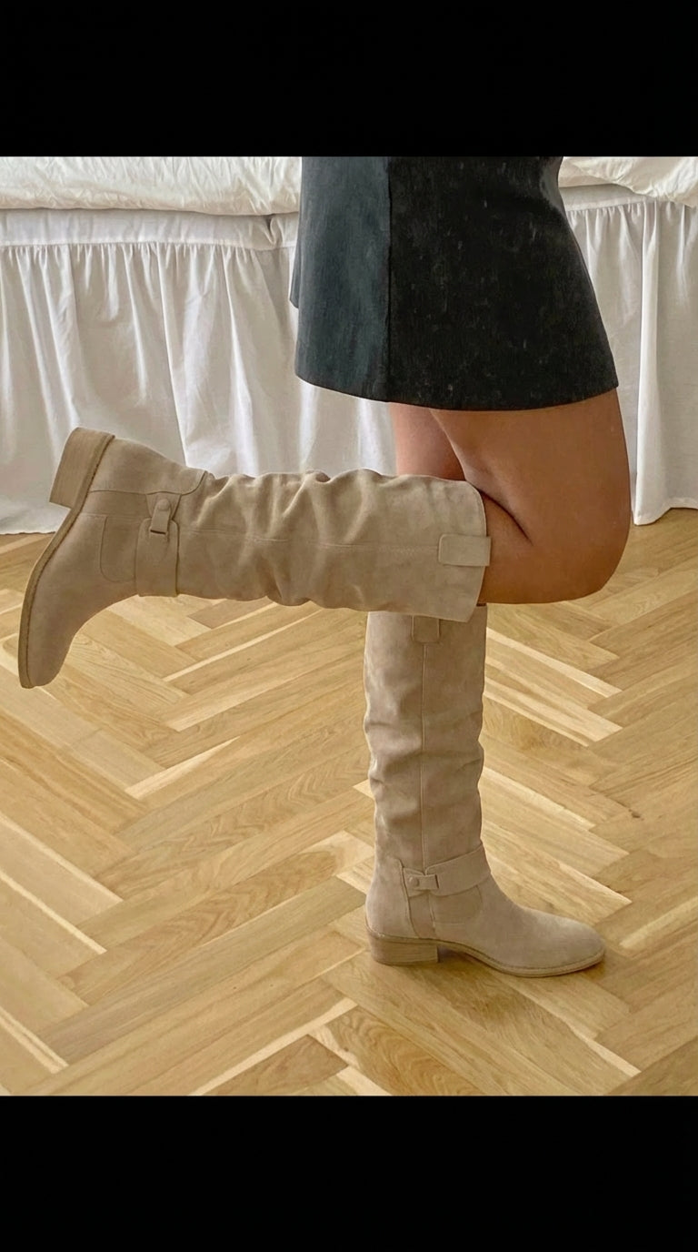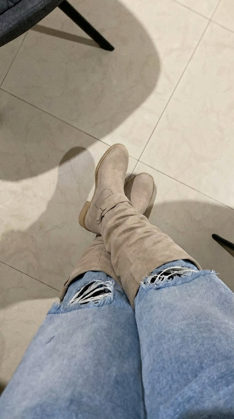 Estas son las botas BelleVie, elegantes botas confeccionadas en ante suave, diseñadas para un look atemporal y la máxima comodidad. Su acabado refinado y ajuste perfecto las hacen ideales tanto para looks casuales como formales.